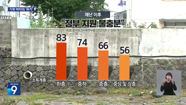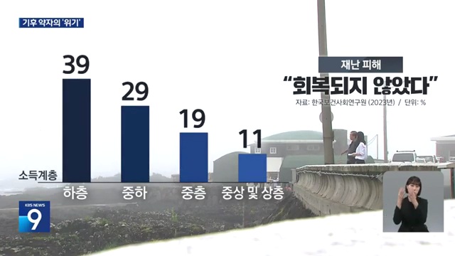 실제 같은 재난을 겪더라도 아직 회복되지 않았다고 응답한 사람은 취약계층일수록 높아져 하층에선 40%에 가까웠습니다