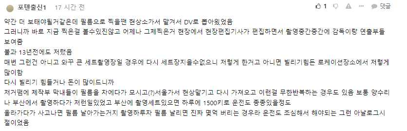 아날로그 필름을 이어 붙이면서 편집을 하던 시절엔 이 짓을 현장에서 찍자마자 동시에 하겠다는 한국놈들이 진짜 광기긴 했음