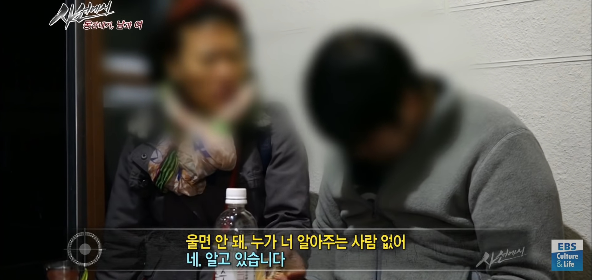 눈물 닦으면서 아주머니한테