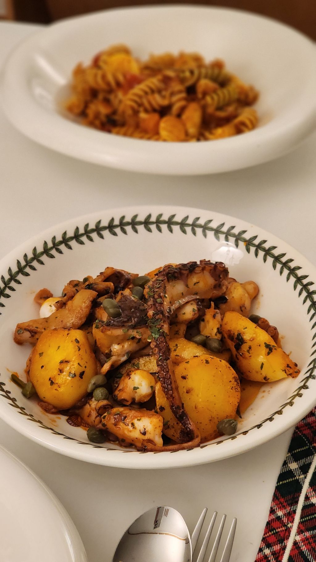 집에 있던 케이퍼 좀 뿌리고 커트러리 세팅!