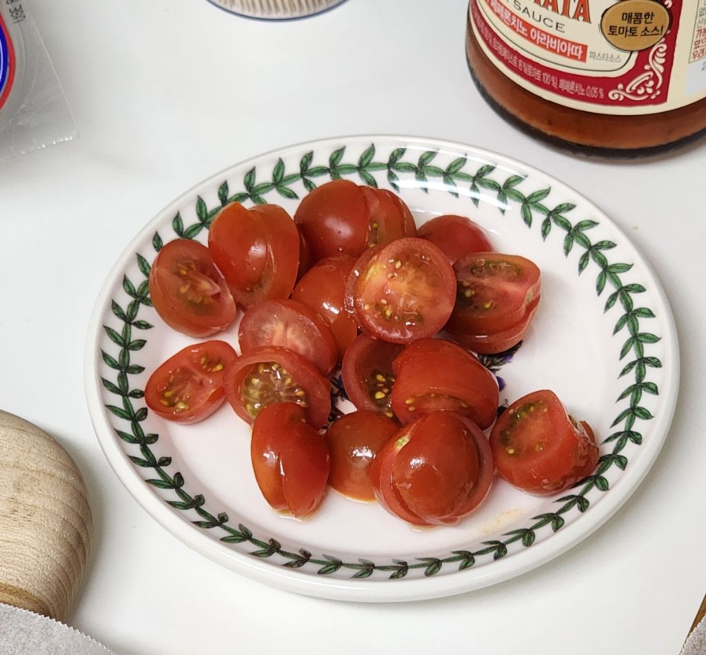 세척 후 토마토는 토핑처럼 얹어줄거라 썰어놨어