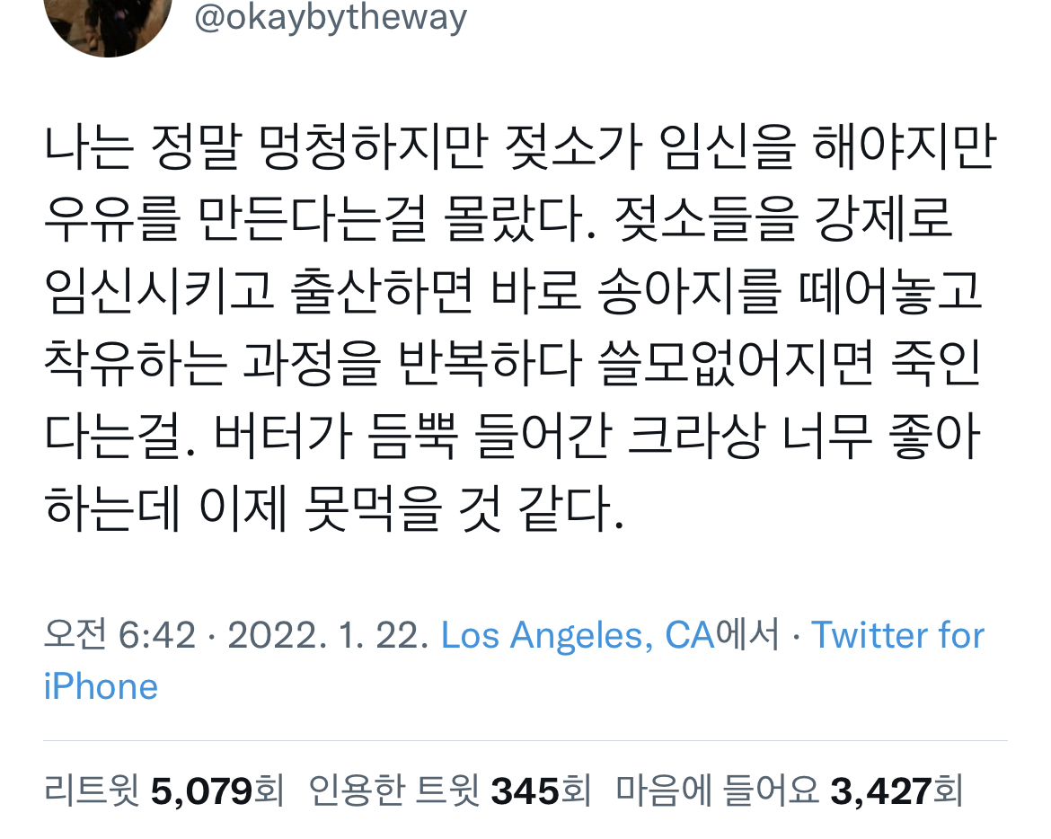 나는 정말 멍청하지만 젖소가 임신을 해야지만 우유를 만든다는걸 몰랐다.