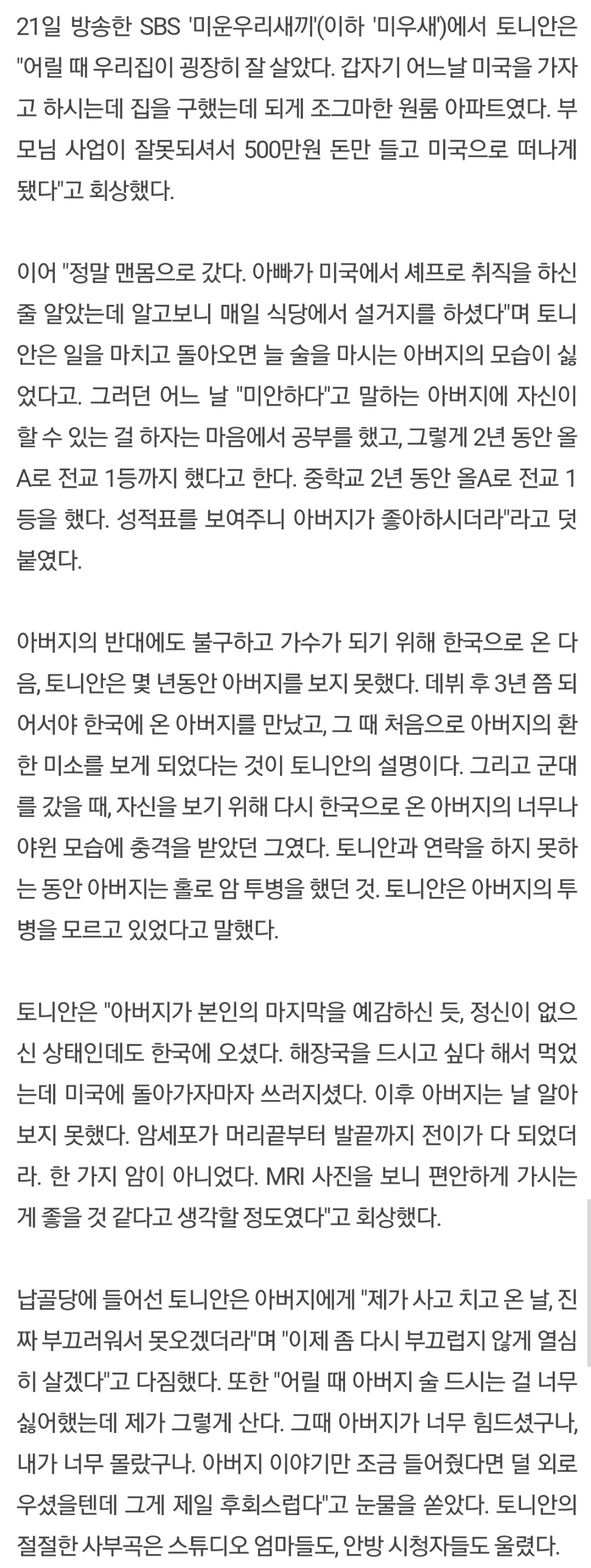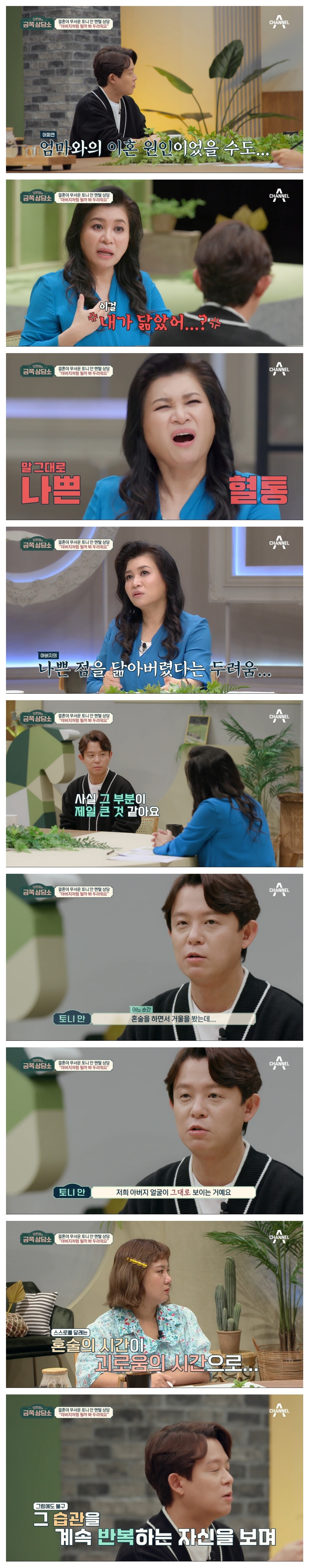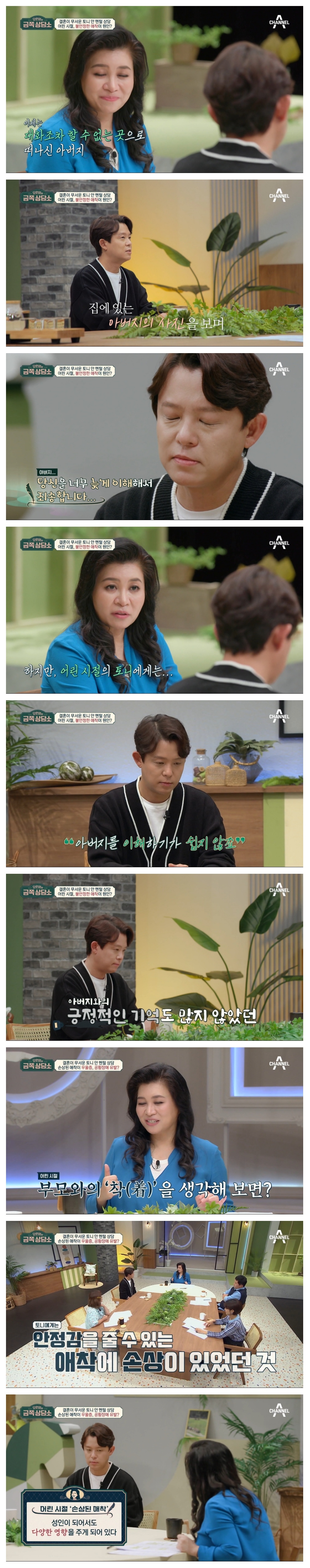 [금쪽상담소] 어머니가 넷이였던 아버지와의 부족한 애착관계가 만든 토니의 우울증 (스압)