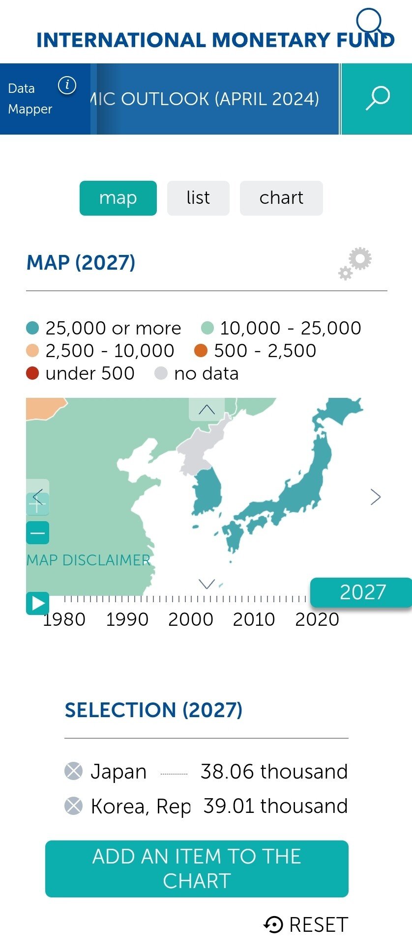 2024년에 한국이 일본을 추월한다는 예측은 올해1월(정확히는 작년10월 발표치의 마이너 수정버전)에도 나왔지만, 1월 발표에는 2025년부터 일본의 재추월을 허용한다고 예측했는데, 어제 나온 발표에서는 최대예측연도인 2029년까지 일본에게 재추월을 허용하지 않음. IMF 예측기간내내 한국의 1인당 명목GDP가 일본을 추월한것은 사상 최초임.