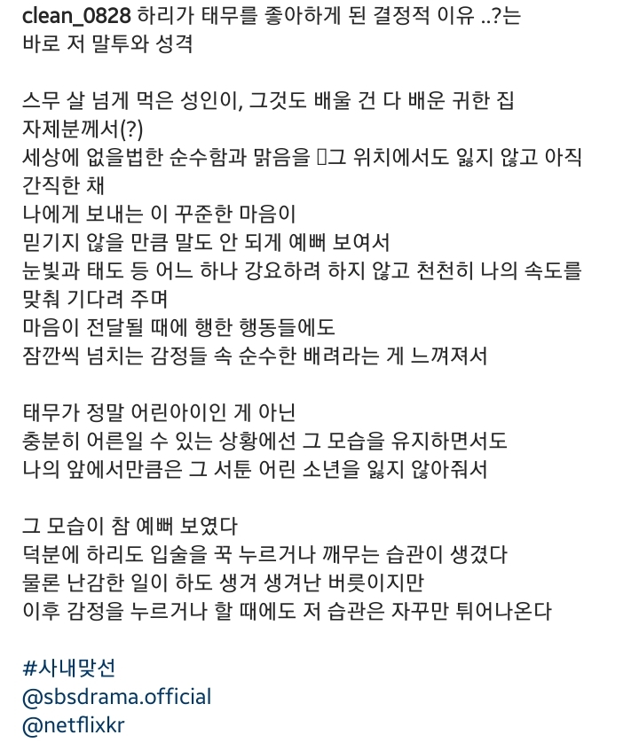 사내맞선 7화에서 처음 나온 키스신 방영 후 인스타에 장문으로 글 써서 올렸던 것도 그렇고