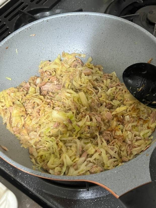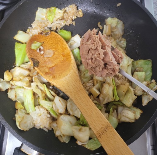 대충 기름에 참치랑 양배추 넣고 볶다가