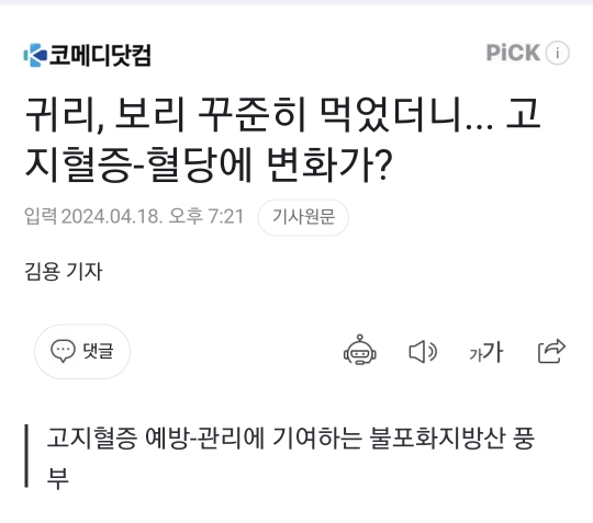 귀리, 보리 꾸준히 먹었더니... 고지혈증-혈당에 변화가? 나이 들면 혈당 조절, 혈관 관리에 공을 들여야 한다. 위험한 심장-뇌혈관 질환의 출발점이 고지혈증, 당뇨병, 고혈압이기 때문이다. 혈당-혈관 관리를 위해 채소만 먹을 순 없다. 탄수화물을 줄 n.news.naver.com ......전문 출처 모래폭풍갈매기 vs 까마귀오늘자 팀을 4강으로 이끄는 마르티네스.gif근거리 인파이팅 교육하는 듀란옹토푸리아 : 벨트 2개를 가질 수 있다는 걸 알아버렸지뭐야.