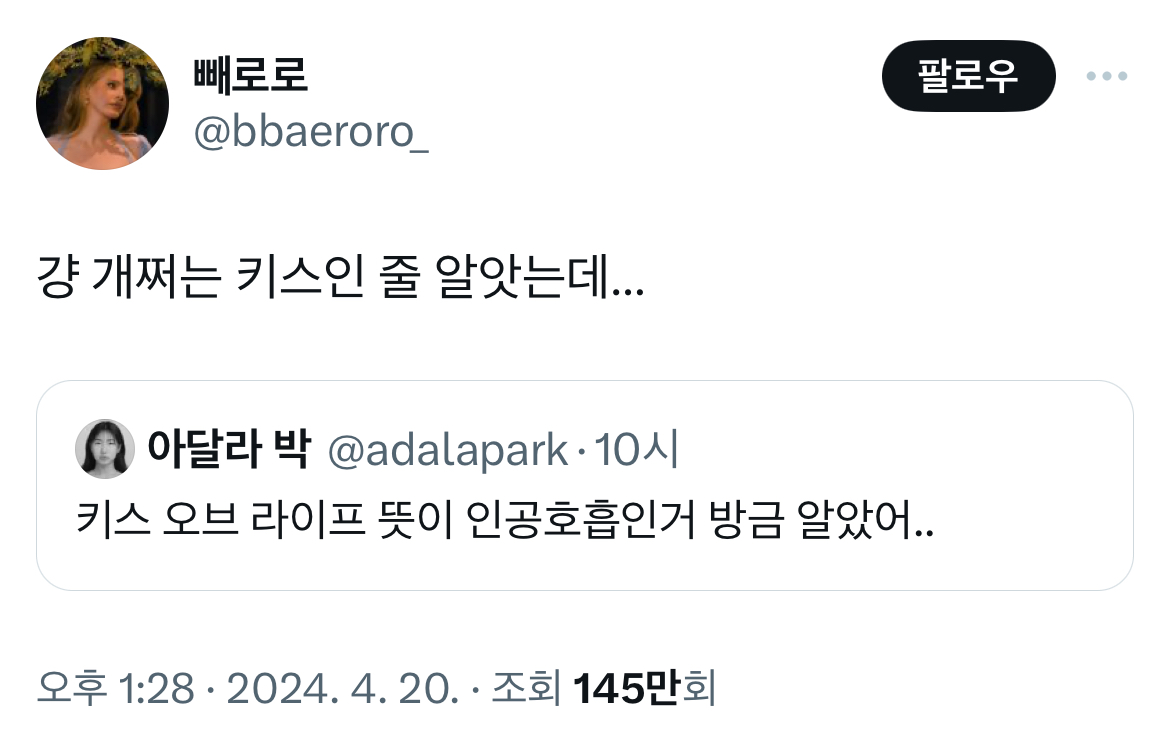 X의 빼로로님(@bbaeroro_) 걍 개쩌는 키스인 줄 알앗는데… twitter.com 나도 인생키스인줄;; 아이가 안생겨 도련님보고 그림 그려달라 했는데다음 주(4/27) 놀라운 토요일 게스트밥과 술에 진심인 내 기준 맛집들,,먹방 중 임신 고백소개팅에서 무례한 2살 연상 남자 ㄷㄷ