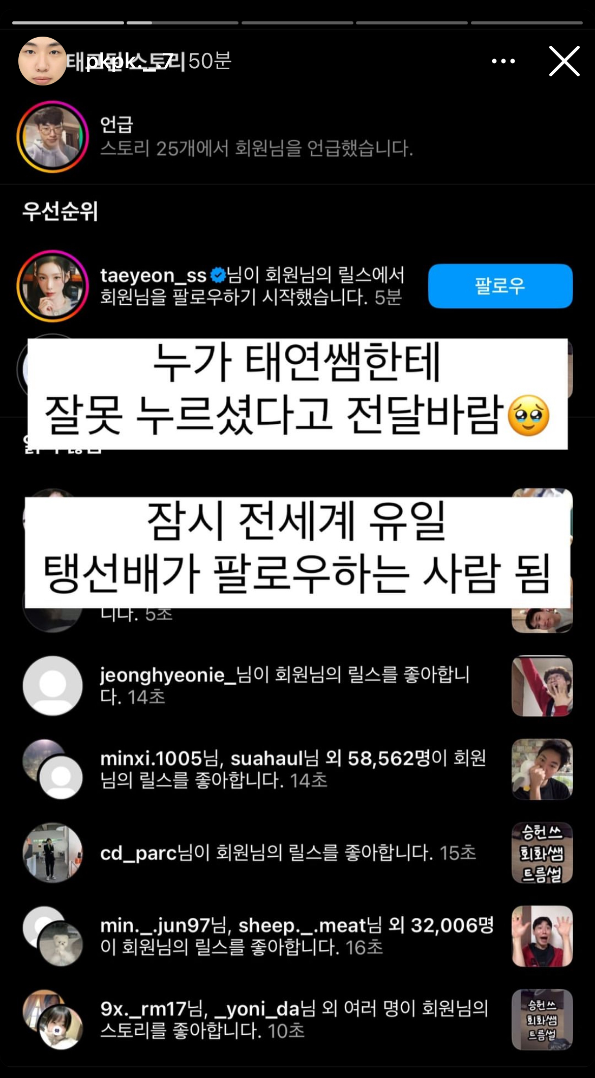 태연이 인스타 팔로우하는 ✨유일한✨ 사람이 된 승헌쓰.jpg