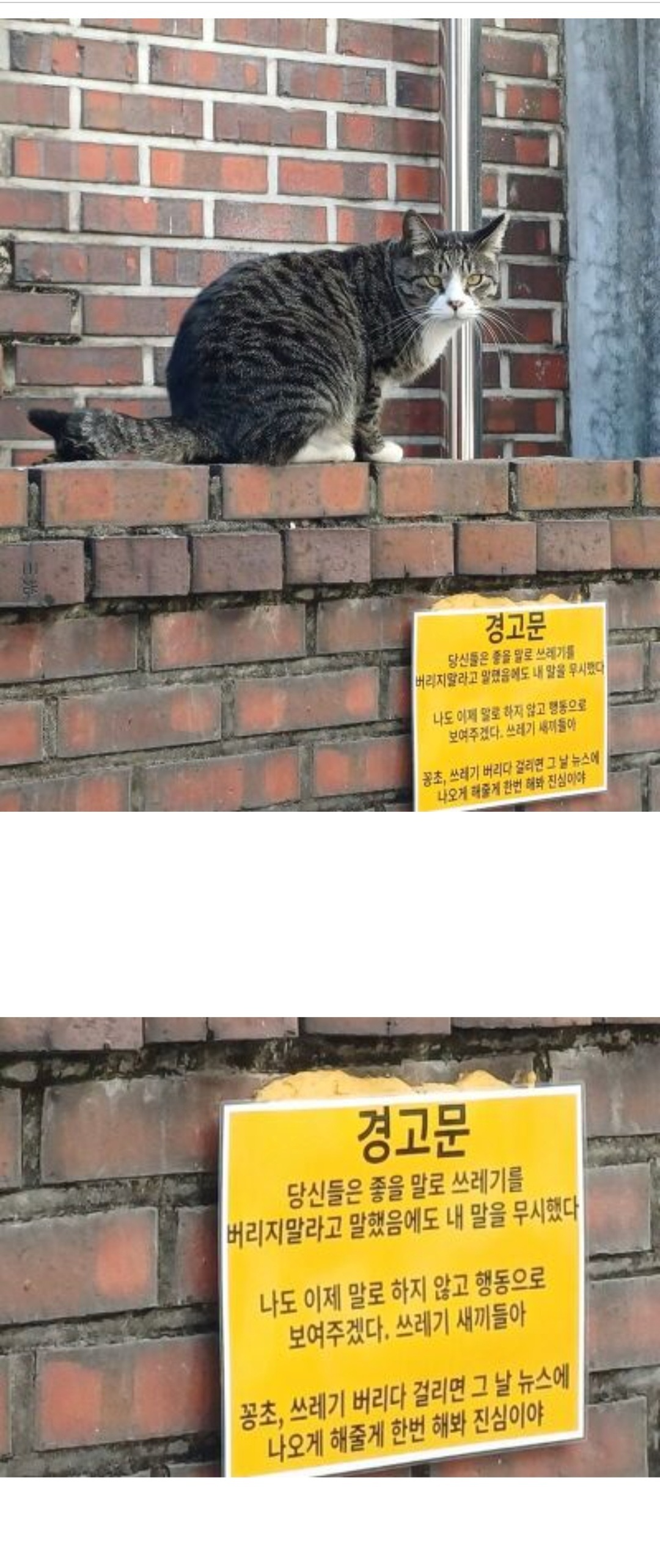 대왕고양이를 찍었는데 밑에 경고문이 심상찮다