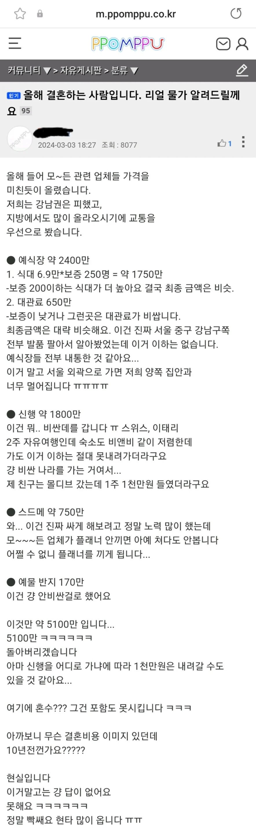 올해 결혼하는 사람이 알려주는 리얼 물가.JPG