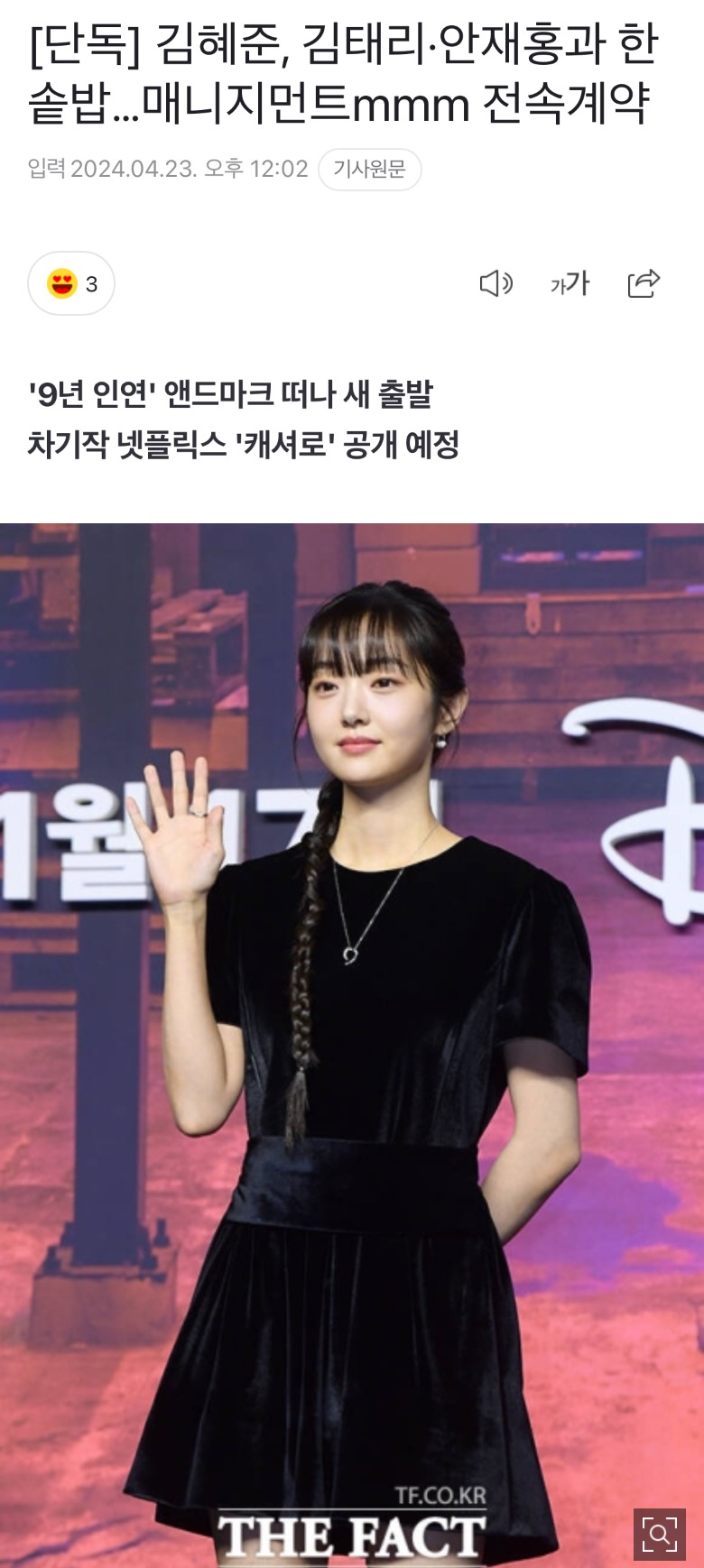 [단독] 김혜준, 김태리·안재홍과 한솥밥…매니지먼트mmm 전속계약