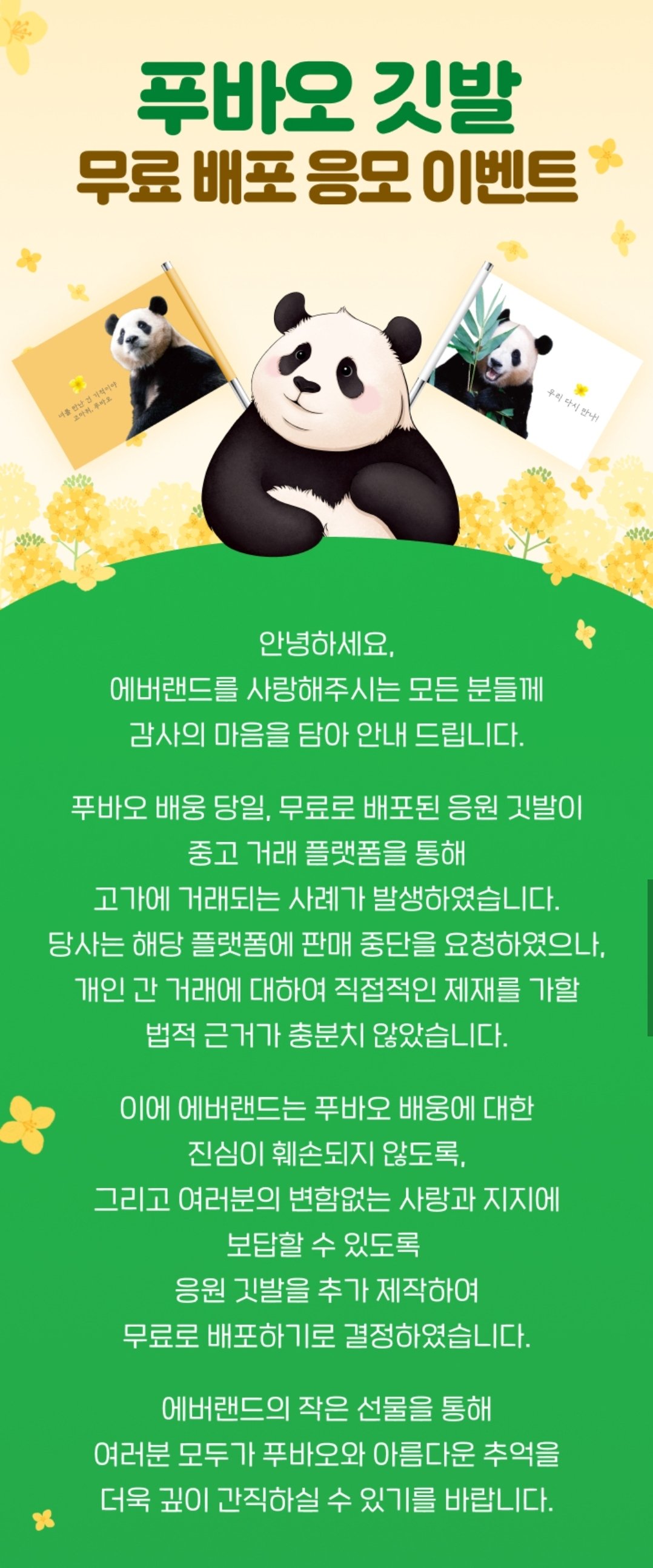 푸바오 깃발이 중고거래에서 고가로 거래되는 걸 본 에버랜드