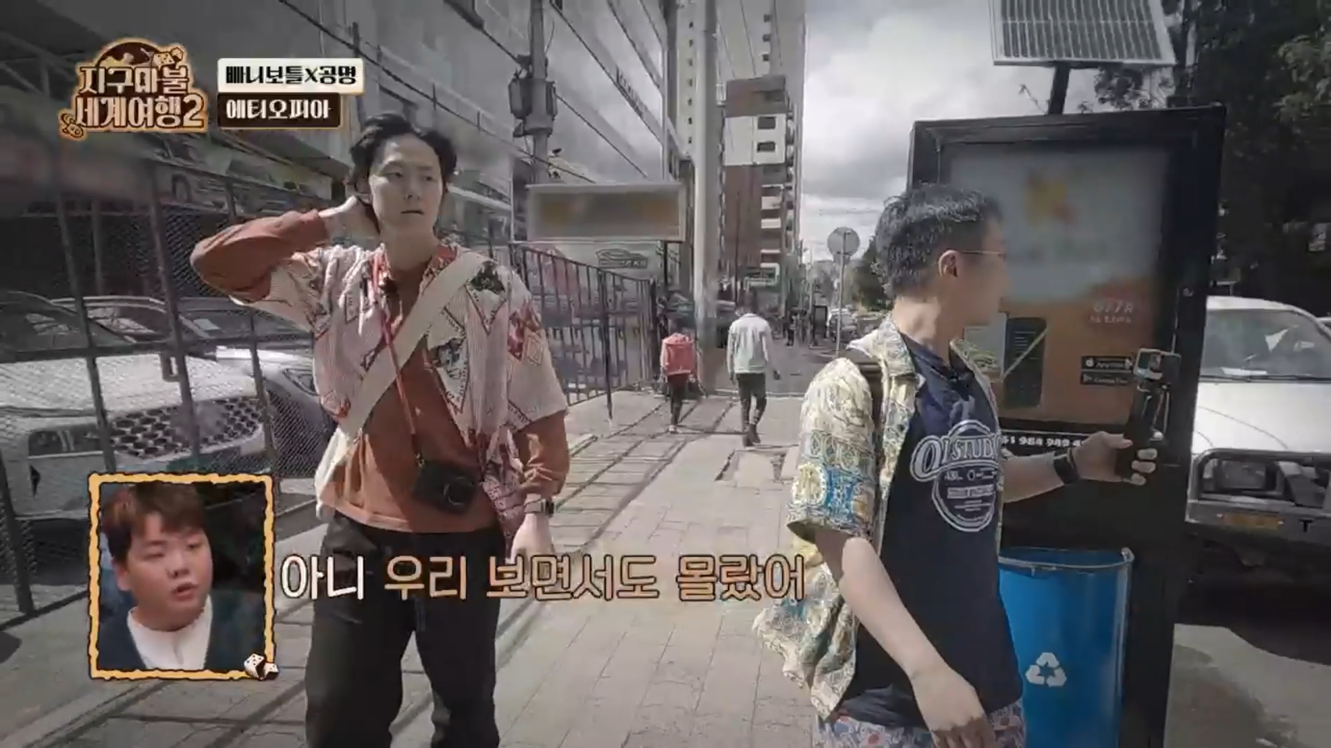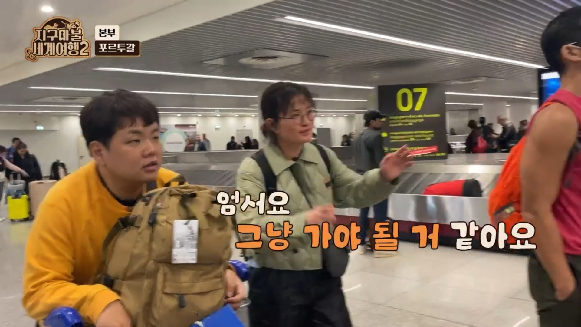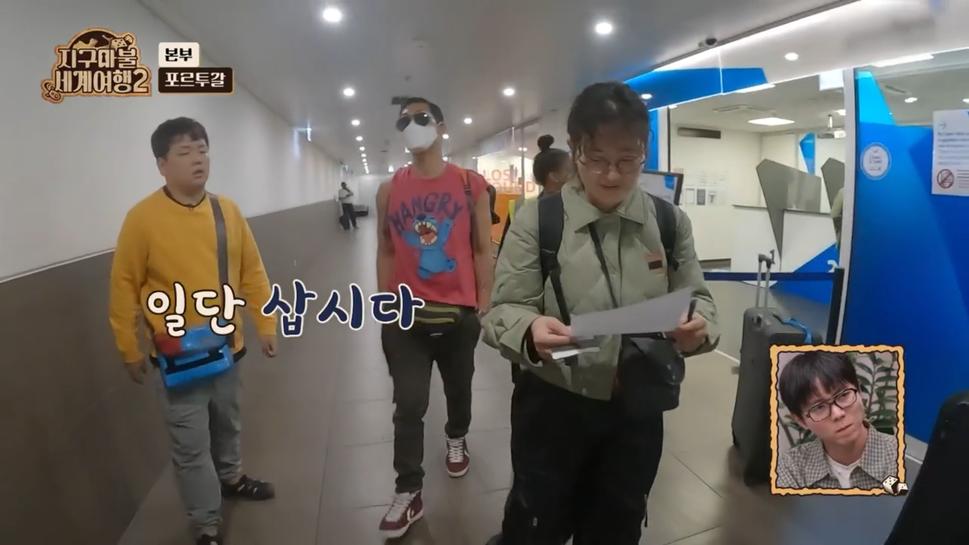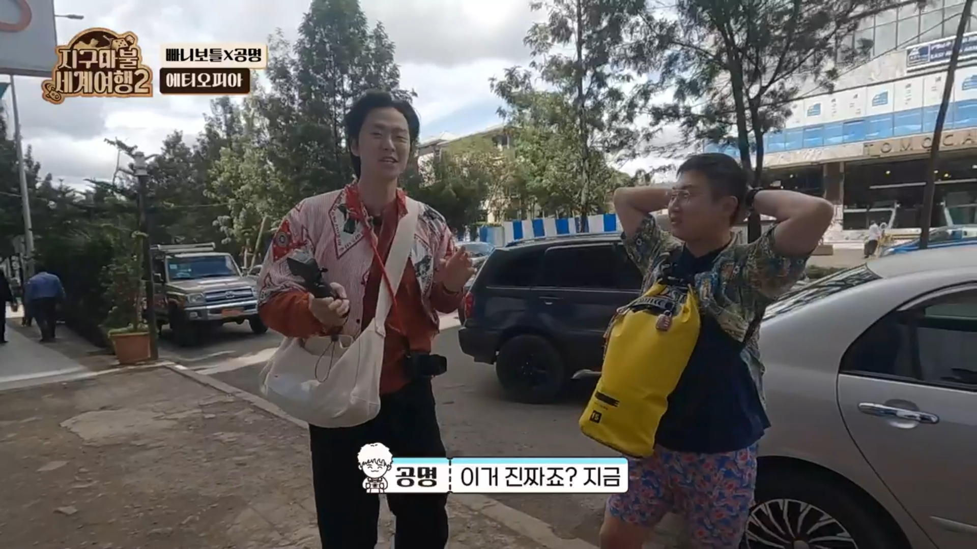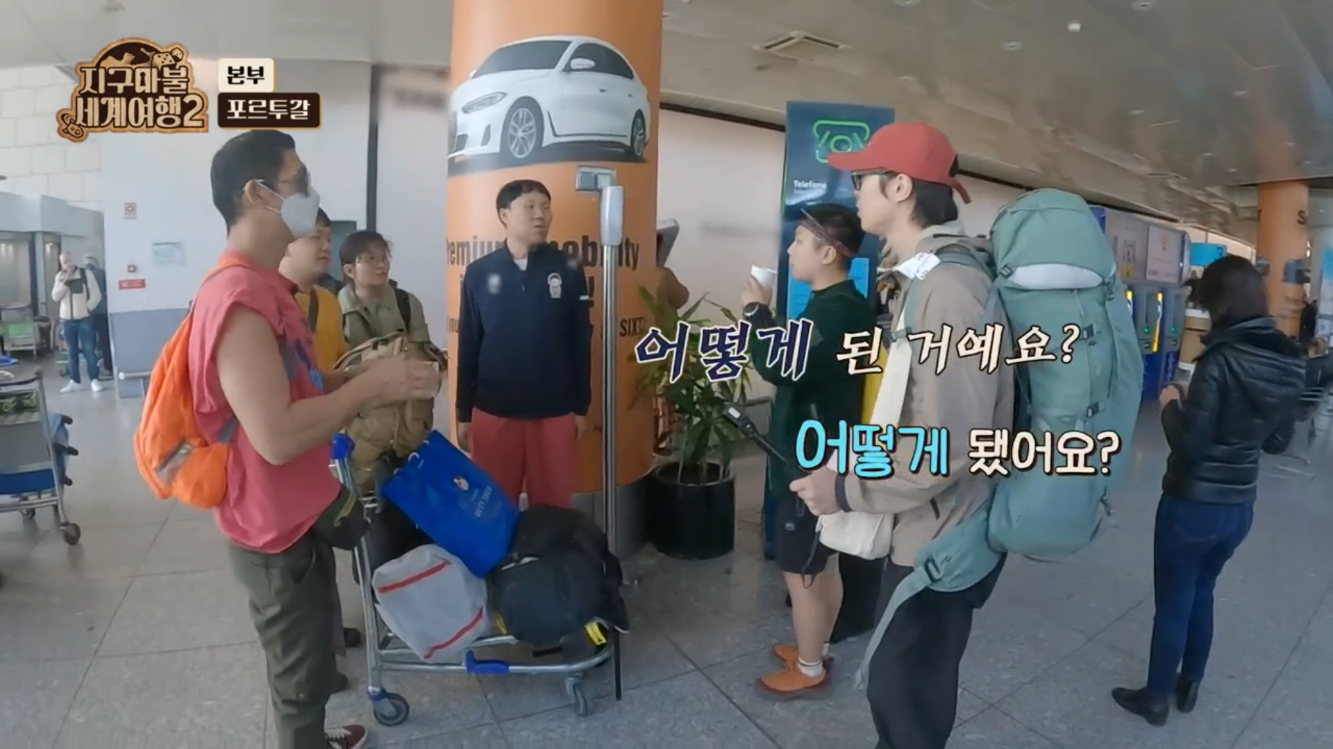 다 같은 나라에서 합류하게 되어서 먼저 온 빠니&공명팀이 기다리고 있는데 다른 멤버들이 안 나오는 중