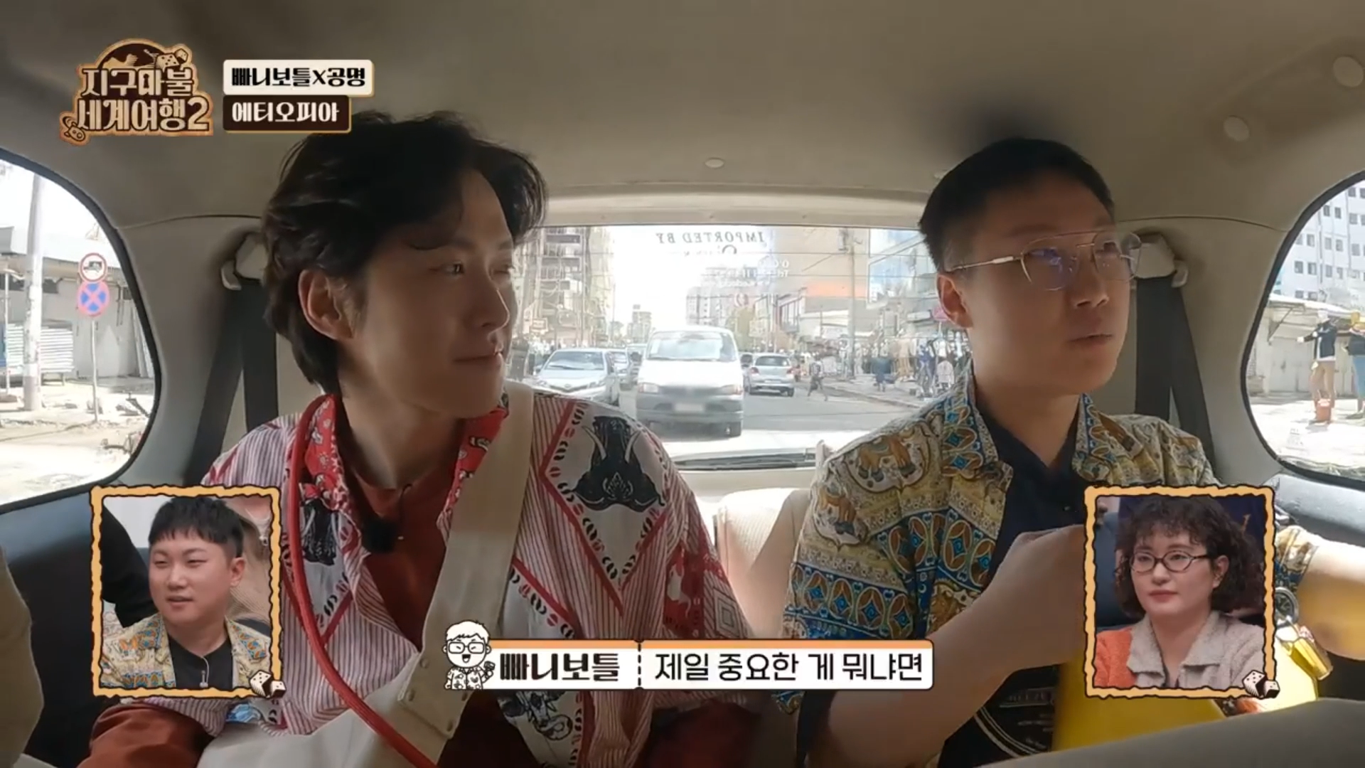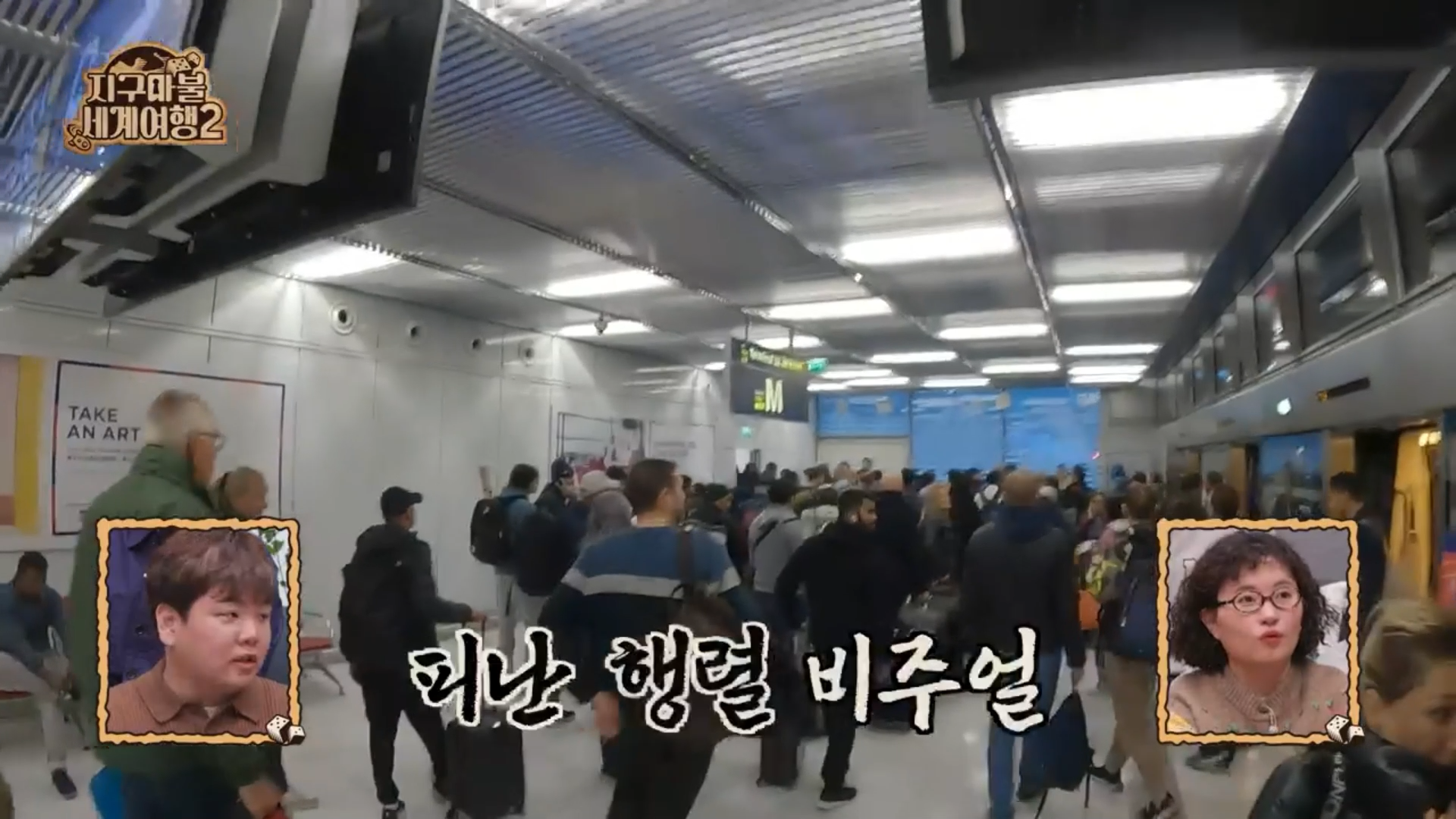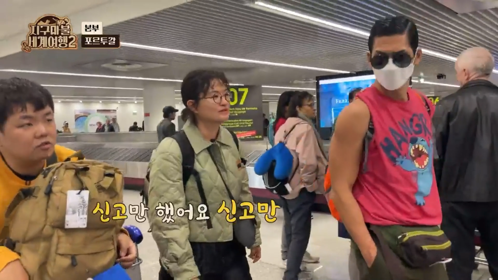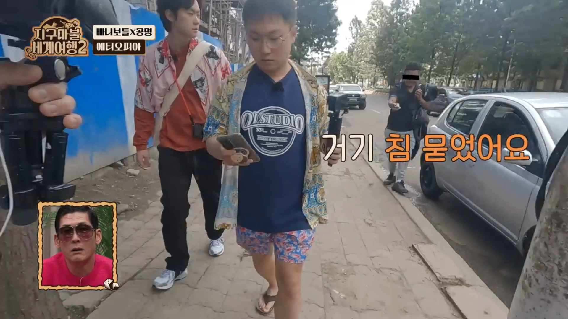 다 같은 나라에서 합류하게 되어서 먼저 온 빠니&공명팀이 기다리고 있는데 다른 멤버들이 안 나오는 중