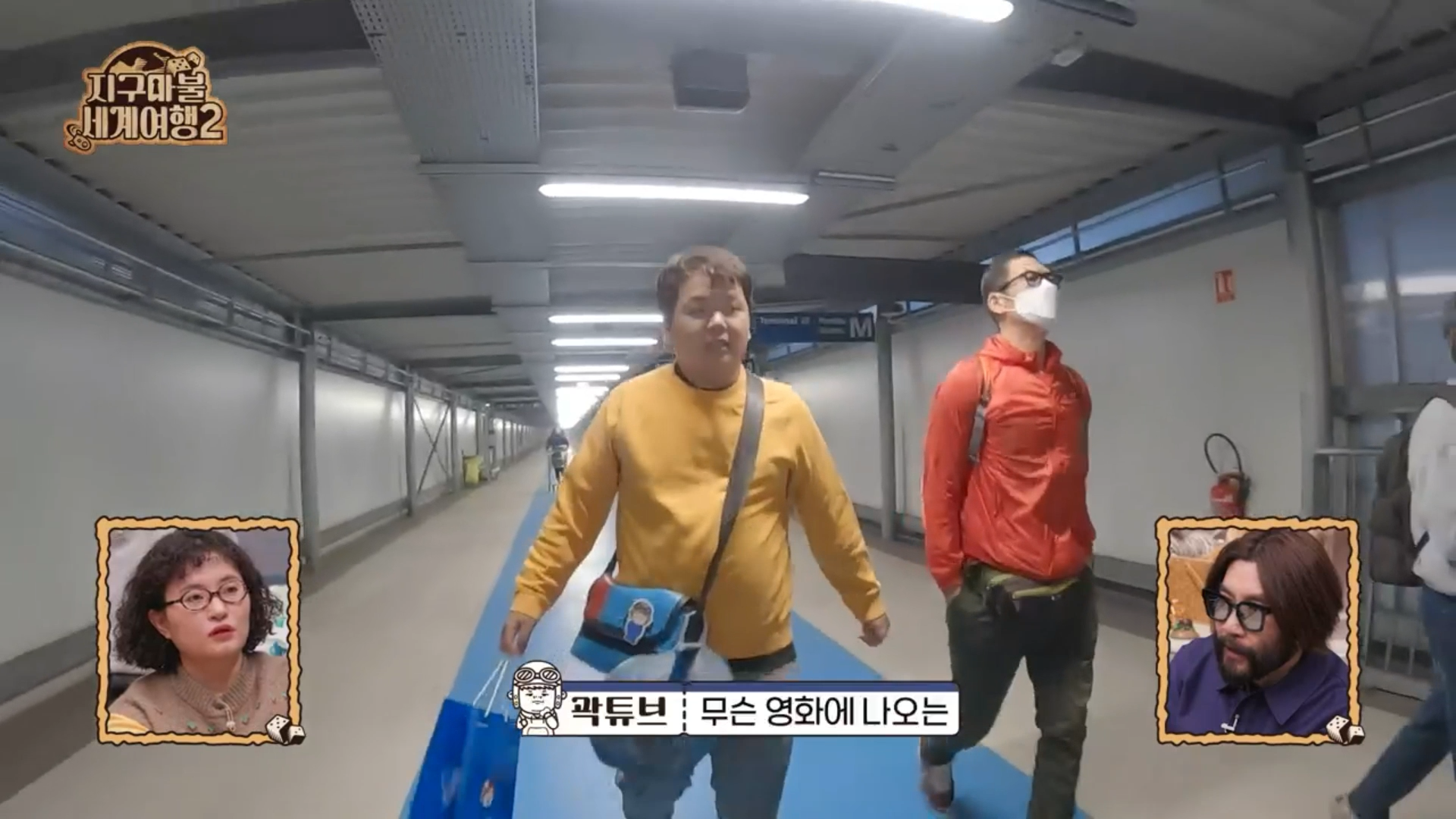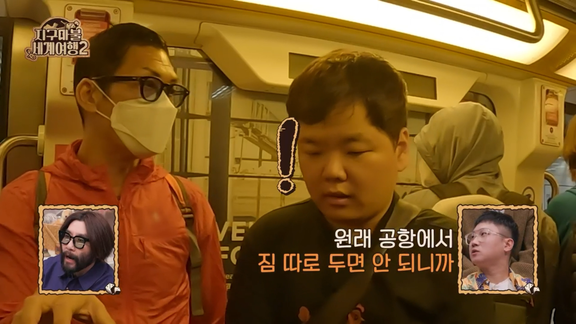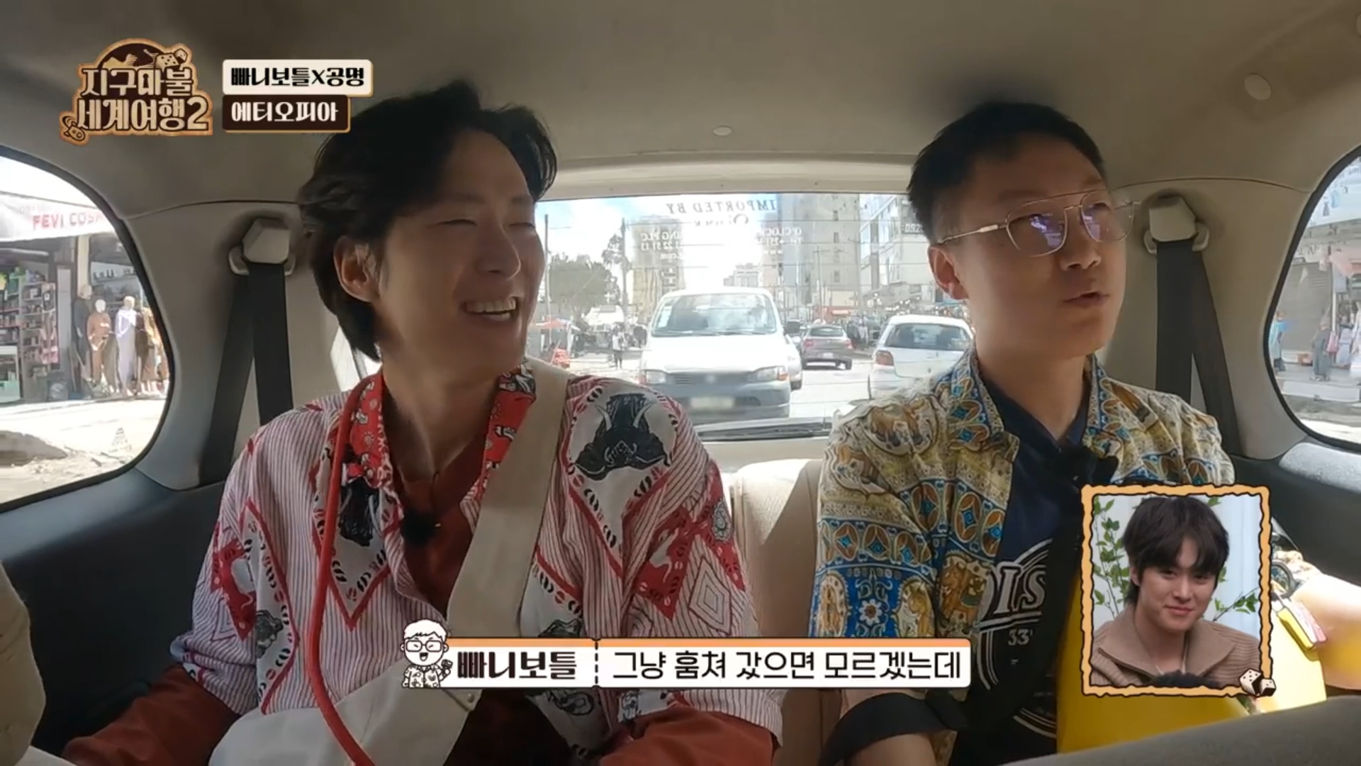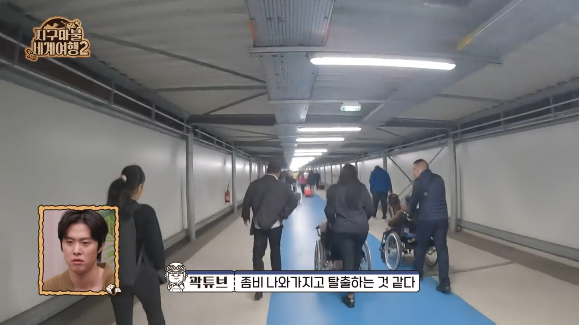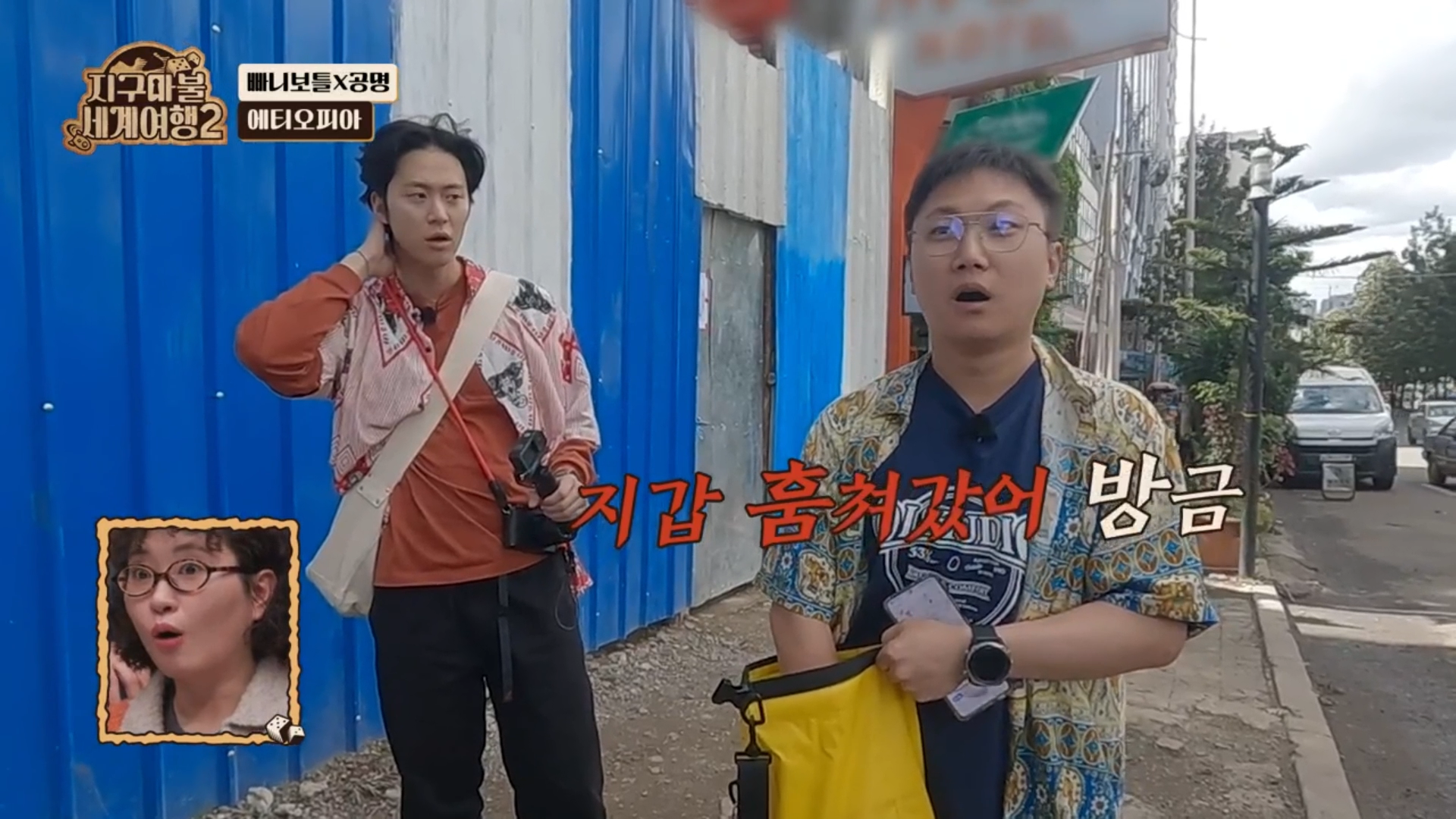 다 같은 나라에서 합류하게 되어서 먼저 온 빠니&공명팀이 기다리고 있는데 다른 멤버들이 안 나오는 중