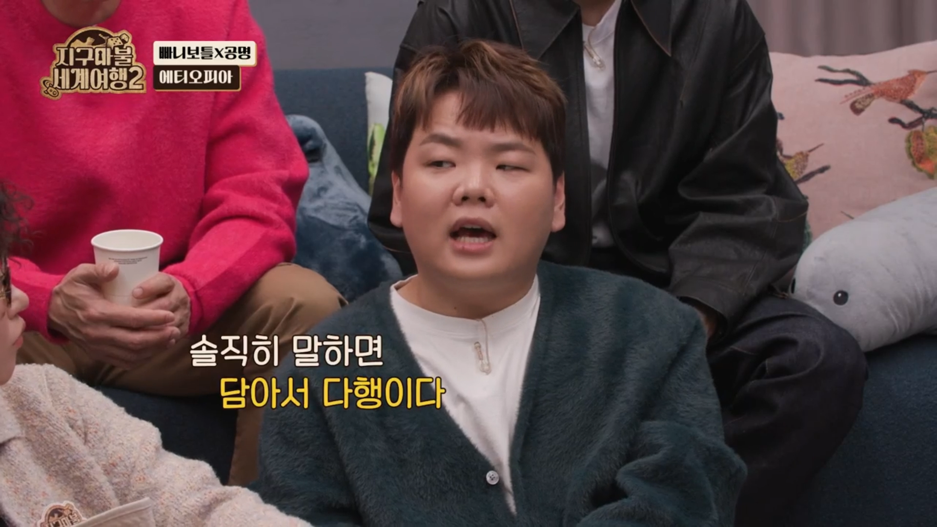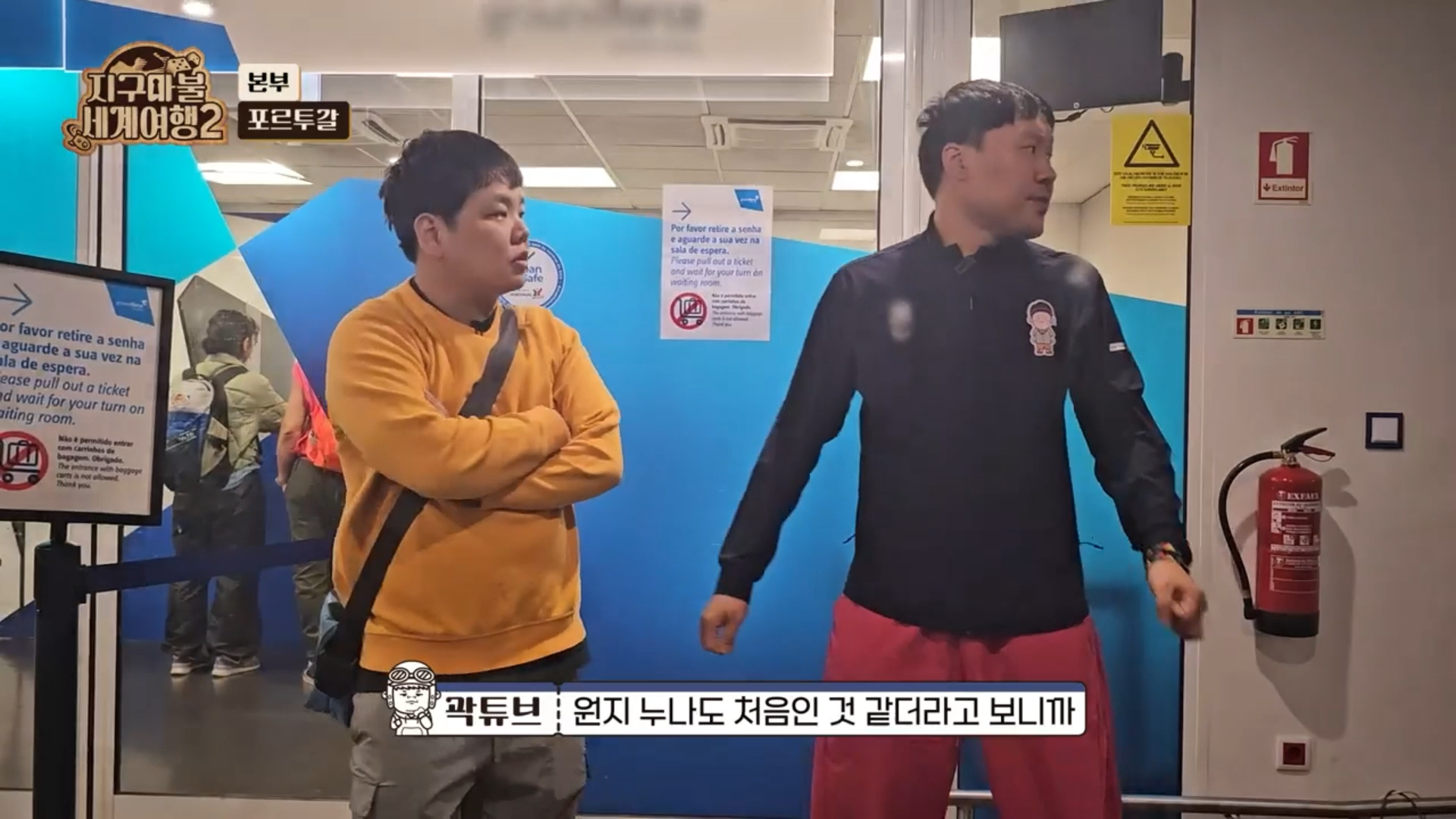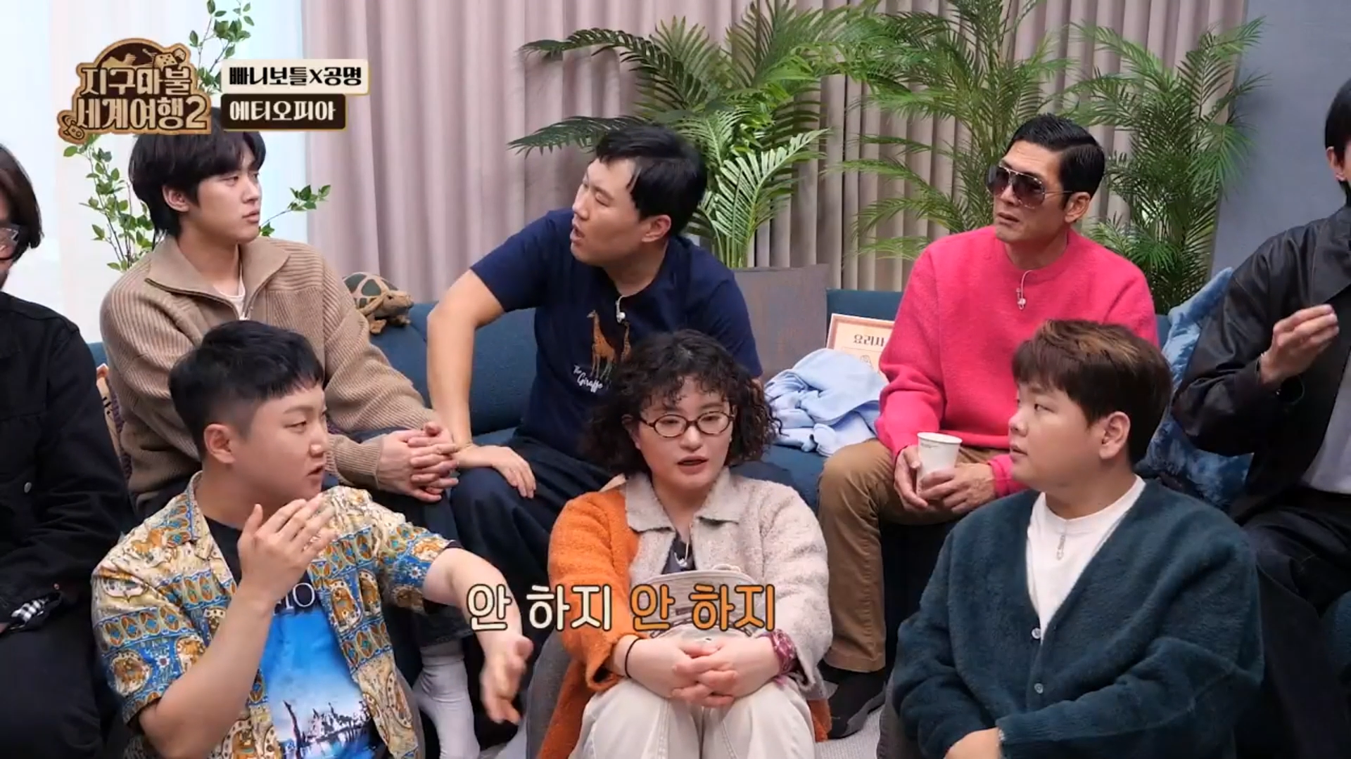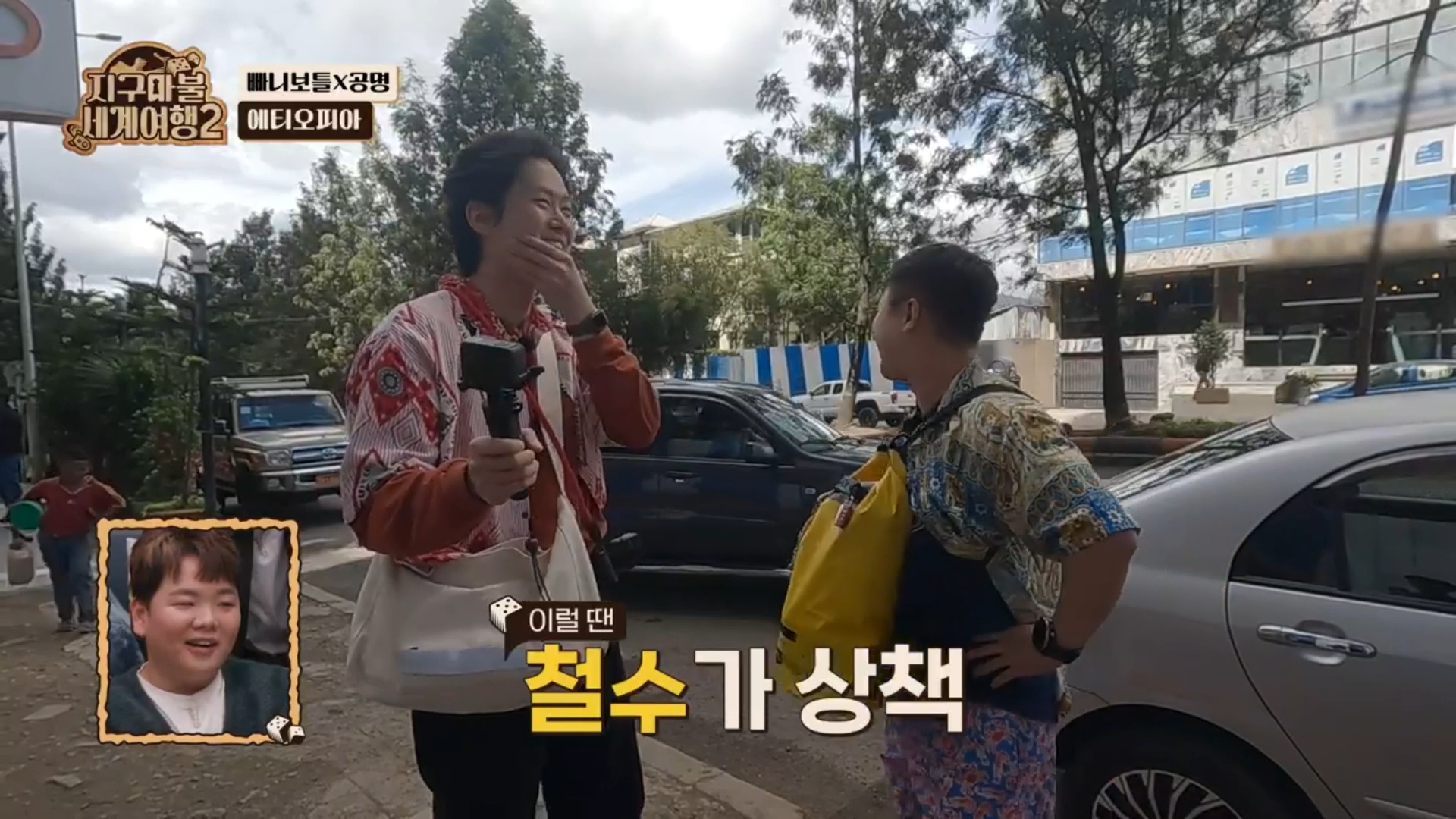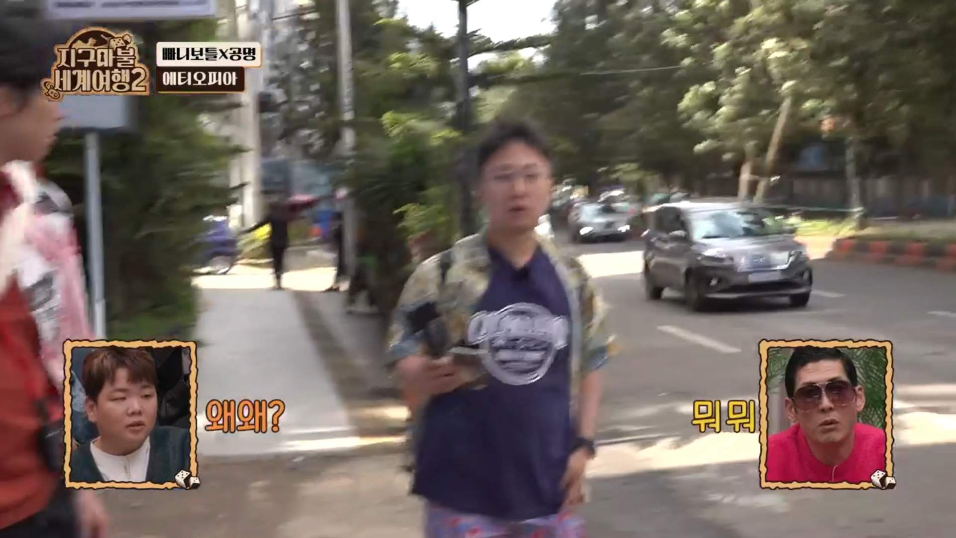 다 같은 나라에서 합류하게 되어서 먼저 온 빠니&공명팀이 기다리고 있는데 다른 멤버들이 안 나오는 중