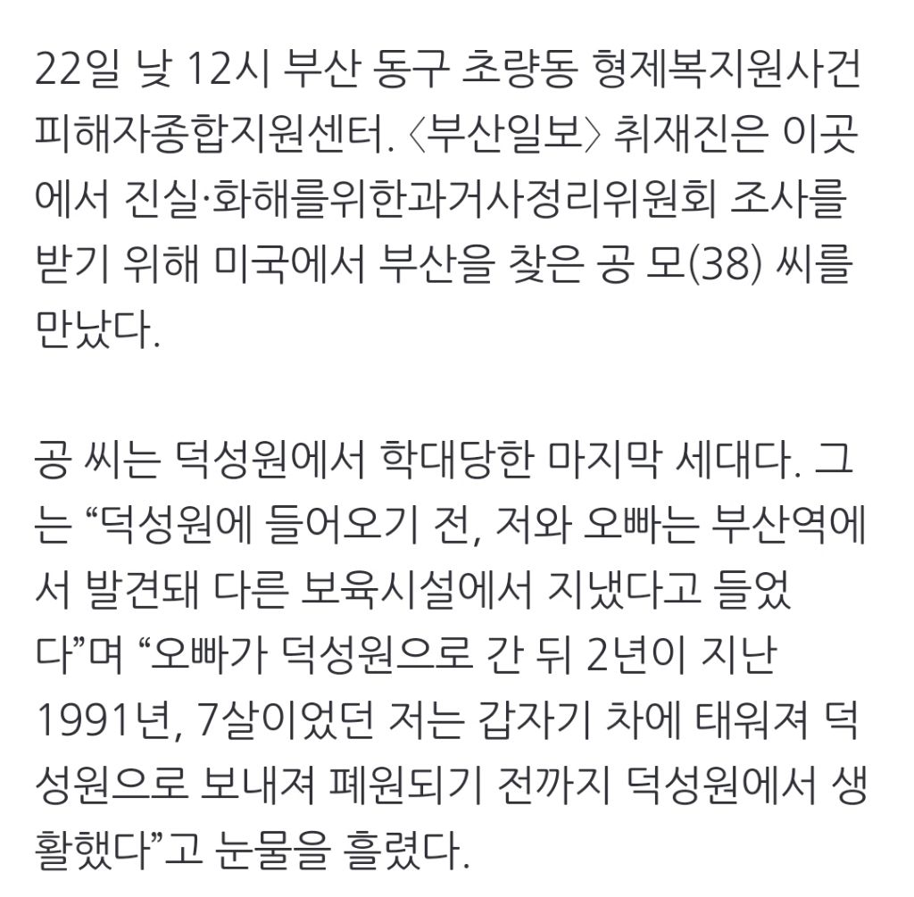 미국서 온 덕성원 피해자 “후원자가 데려가면 다시 못 봐” 1960~1980년대 인권유린의 온상으로 알려진 아동 수용시설 ‘덕성원’(부산일보 2024년 2월 2일 자 11면 등 보도) 피해자들이 진실 규명을 위해 다시 부산을 찾았다. 진실을 알리겠다는 열망으로 미 n.news.naver.com 이하 생략전문 출처로 [선재 업고 튀어] 선재야 인소 그만 봐 소리가 절로 나오는 대사 상태히딩크 한국올때마다 놀랍다는것.jpg야심한 밤에 보는 장작구이통닭마음이 급했던 투숙객이은결 마리텔 우유 마술쇼