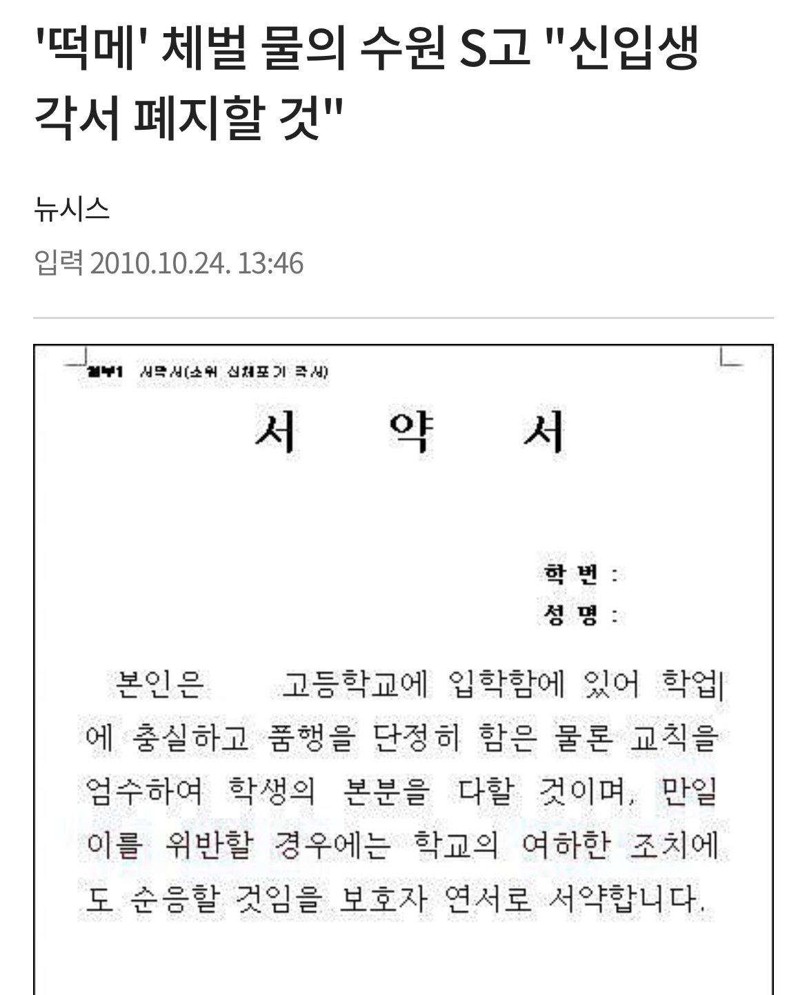 학교에서 신체포기각서(?) 받고 열나게 때린게 들통남