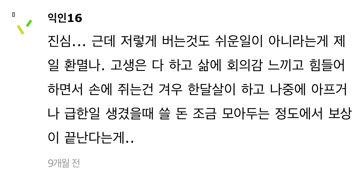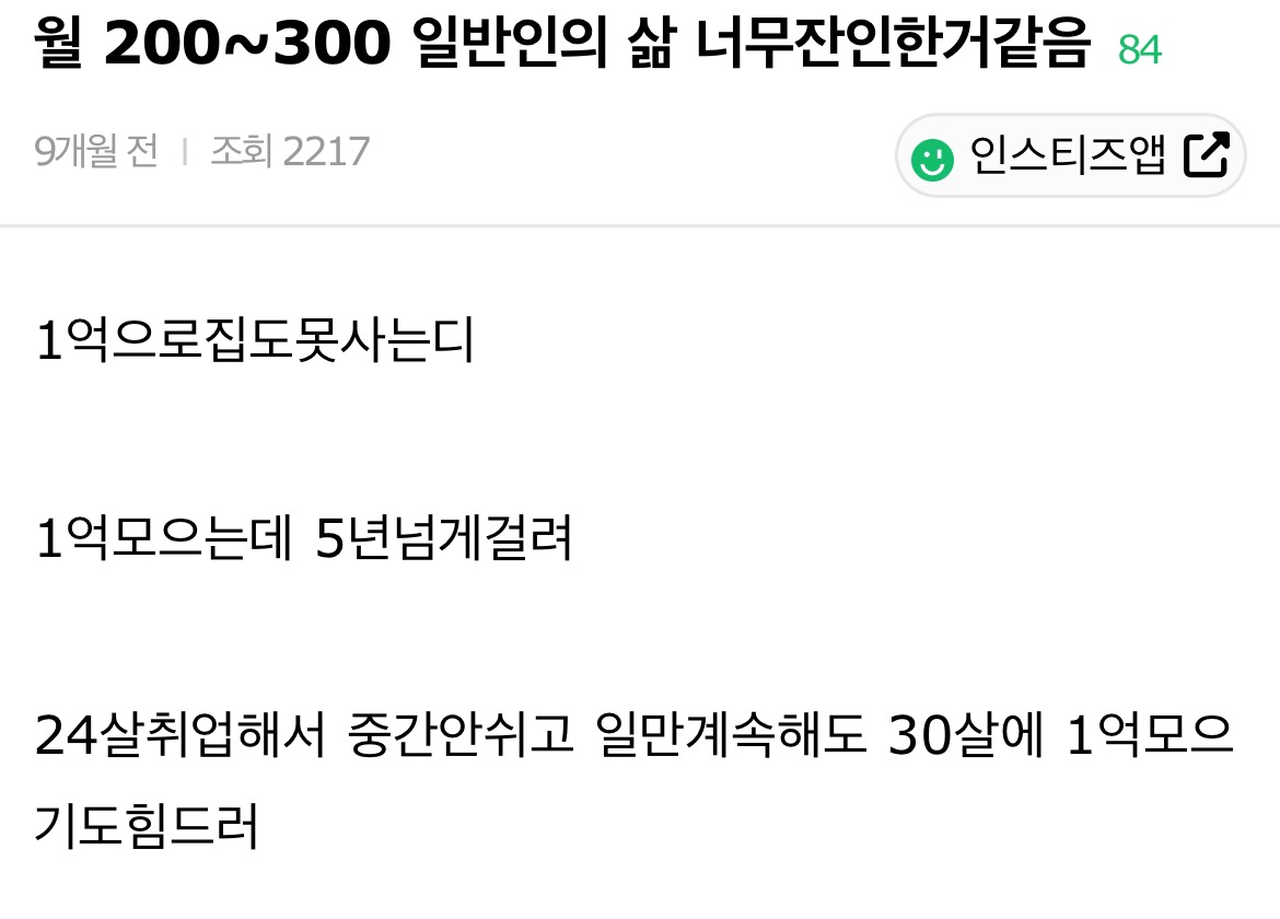 월 200~300 일반인의 삶 너무잔인한거같음 - 인스티즈(instiz) 일상 카테고리 1억으로집도못사는디1억모으는데 5년넘게걸려24살취업해서 중간안쉬고 일만계속해도 30살에 1억모으기도힘드러만약ㅈ1억모아도 할수잇는게없어그냥소확행즐겨야됨 너무 잔인한거같음ㅋㅋ..근 www.instiz.net 루니 아들드디어 국내에서도 판매하는 제로 탄산음료..JPG[단독] 세븐틴 에스쿱스→장진 감독, 푸른 피의 사나이들 ‘찐팬구역’ 출격농심에서 나왔던 즉석떡볶이의 원조였던 제품망찬찬 모자 & 위커, 위아이 이란성 쌍둥이