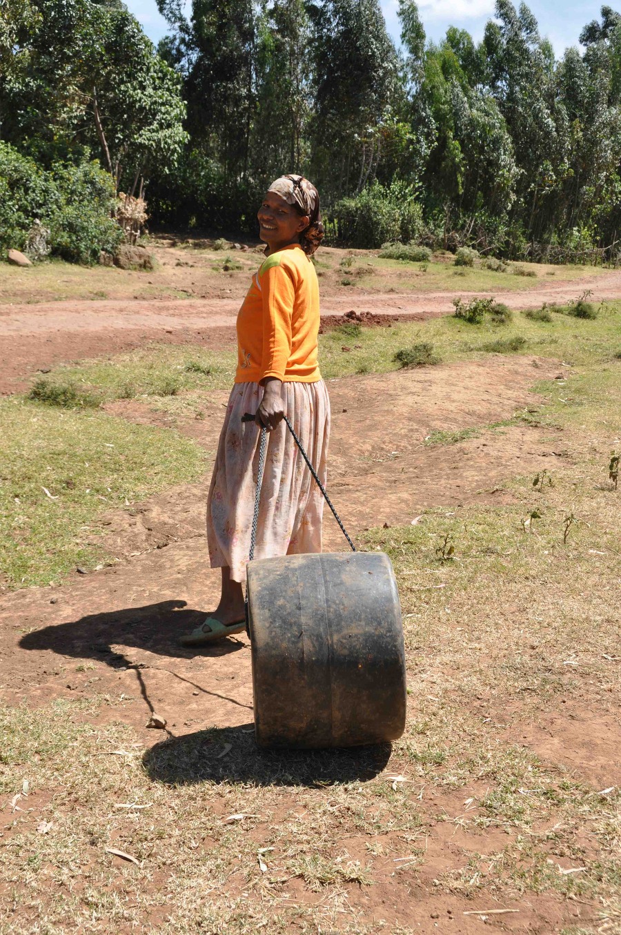 식수 75리터를 어린아이 혼자서도 손쉽게 굴려 이동할 수 있도록 디자인된 제품.