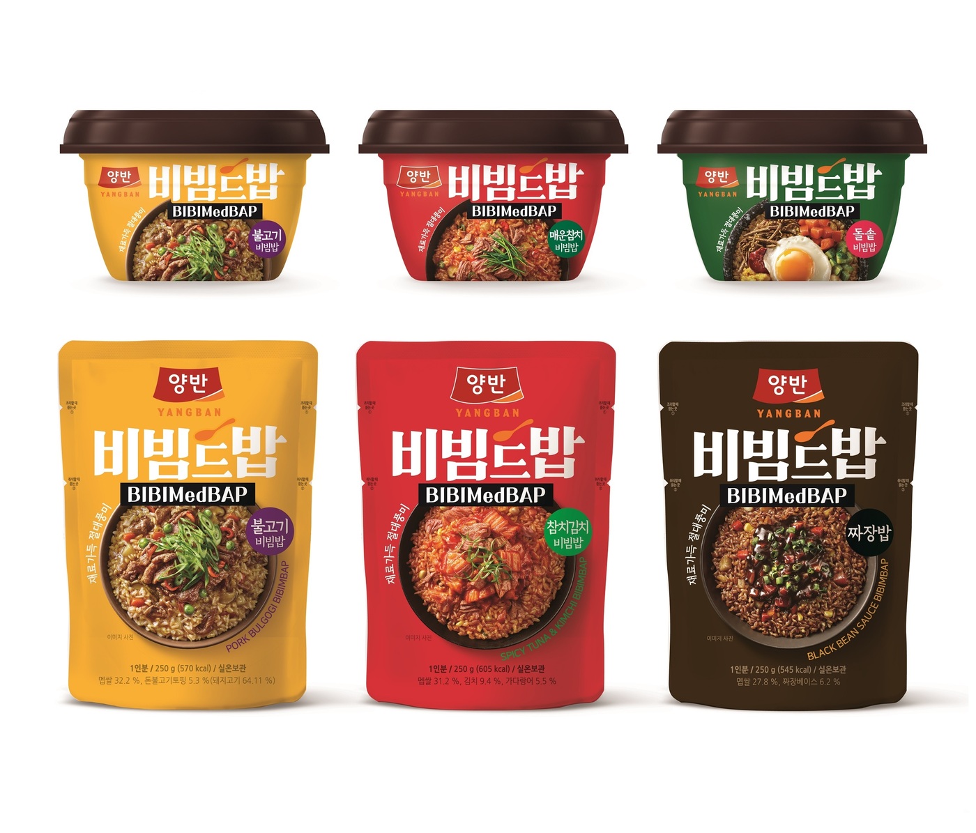 양반 비빔드밥 용기 타입 3종은 △매운참치 비빔밥 △불고기 비빔밥 △돌솥 비빔밥 등이며, 파우치 타입 3종은 △참치김치 비빔밥 △불고기 비빔밥 △짜장밥 등으로 구성됐다. 용기 타입에는 숟가락과 참기름 별첨이 들어있어 간편하면서도 더욱 맛있게 즐길 수 있다.