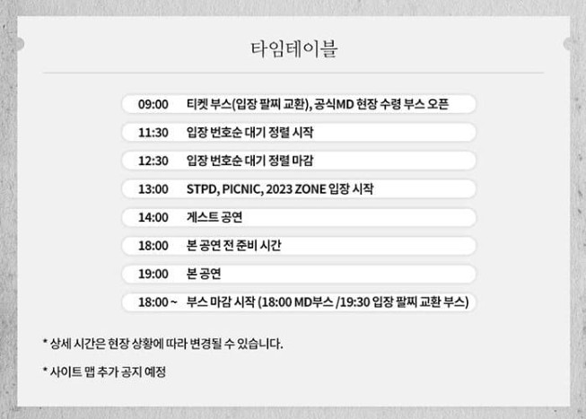 푸드존/스탠딩존/피크닉존/지정석 나누어져있음