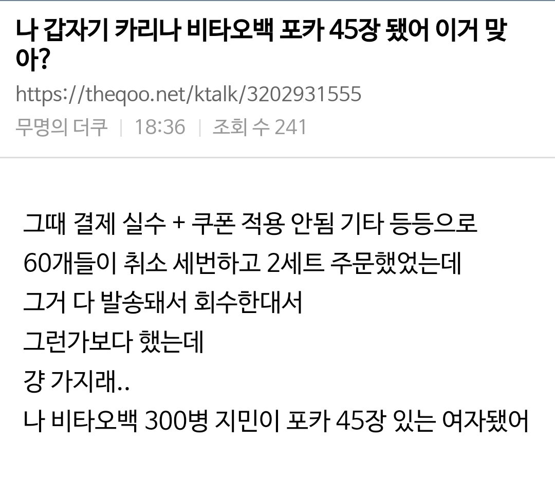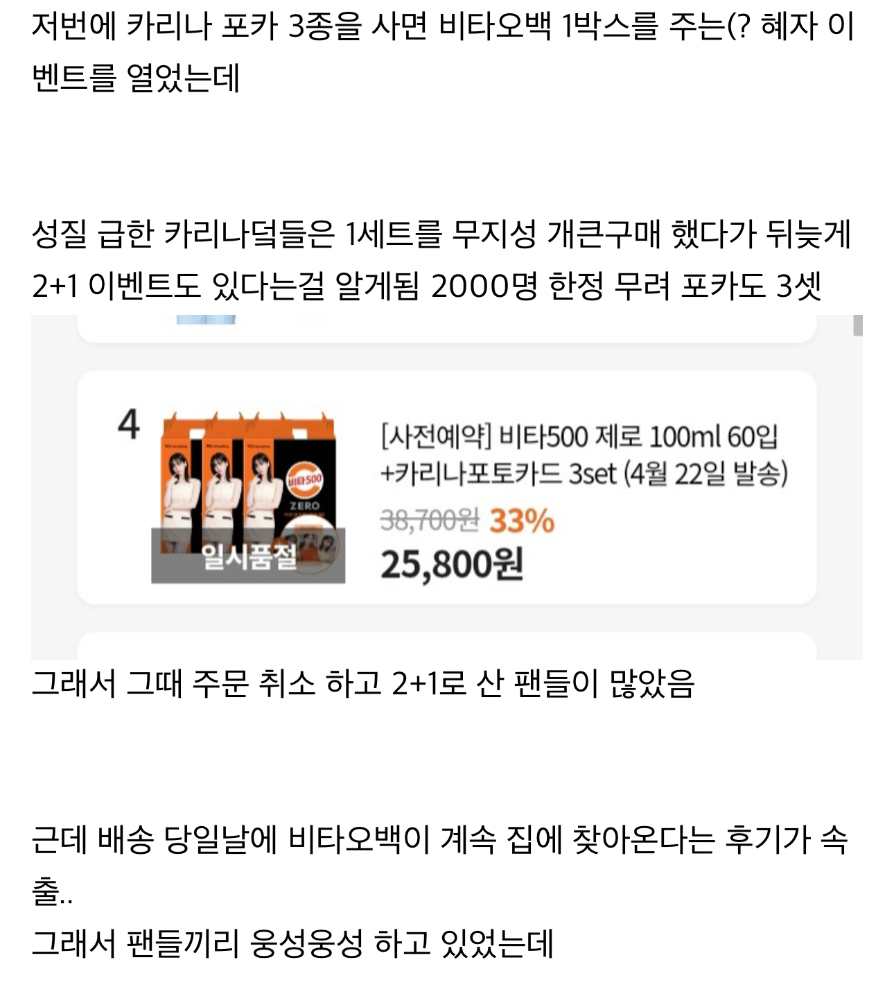 실시간 비타500에 밥 말아먹게 생긴 카리나팬들