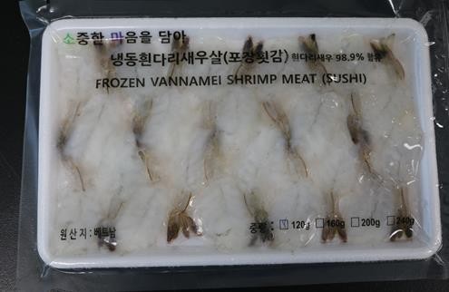 회수 대상 제품은 '주식회사 소마프로젝트'가 수입·판매한 냉동흰다리새우살(포장횟감) 120g, 200g이다. 제조 일자는 2023년 11월 30일이며 소비기한은 제조일로부터 24개월까지다.
