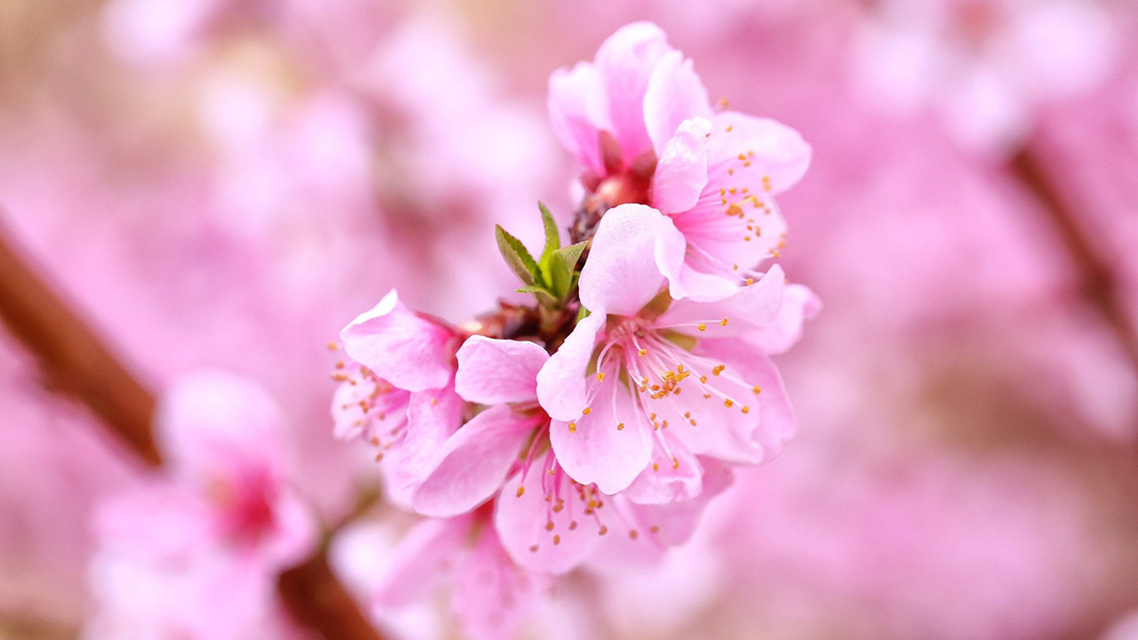 음식도 복숭아꽃으로 장식, 사람들도 복숭아꽃을 가지고 있음