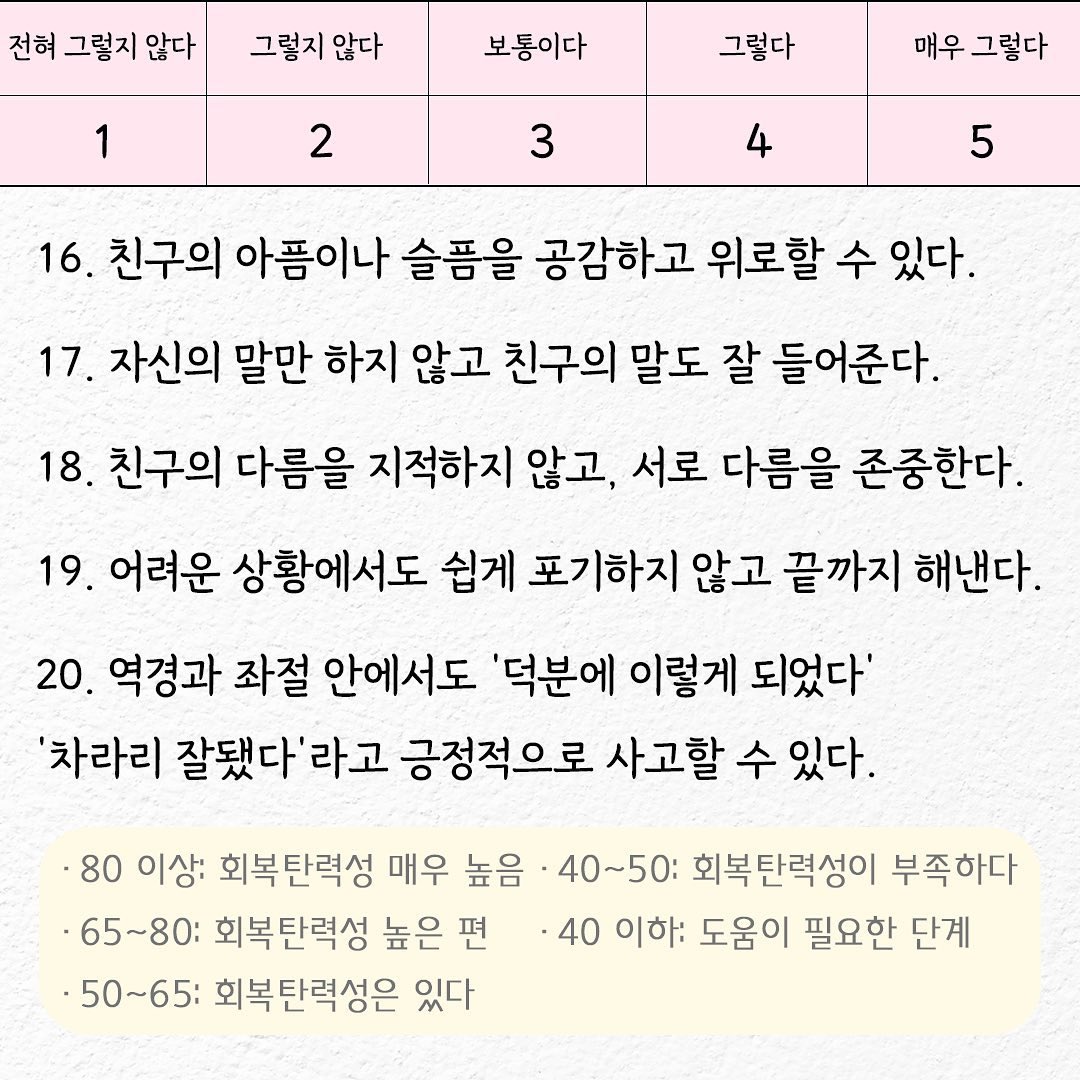 X의 Martius님(@esprecchiato) 회복탄력성 지수 체크리스트 (feat. 긍정성, 적응성, 지속성, 자기조절능력, 문제해결능력, 대인관계능력) twitter.com 원영적사고 밈쓰는 아이브 리즈...jpgif보고서 어른들이 울었다는 도라에몽 에피소드즐거운 독서를 위한 필수적이지 않은 여러 독서템하루 전에 미리 보는 4월 30일 별자리 운세얼코니칼국수