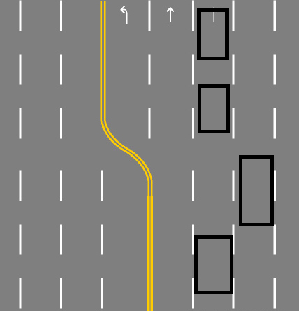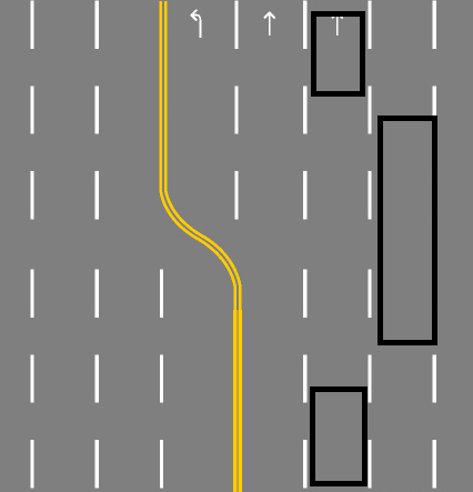 버스는 전장이 10m 넘기때문에 일반 승용차처럼 평행으로 차선변경 시도하려면