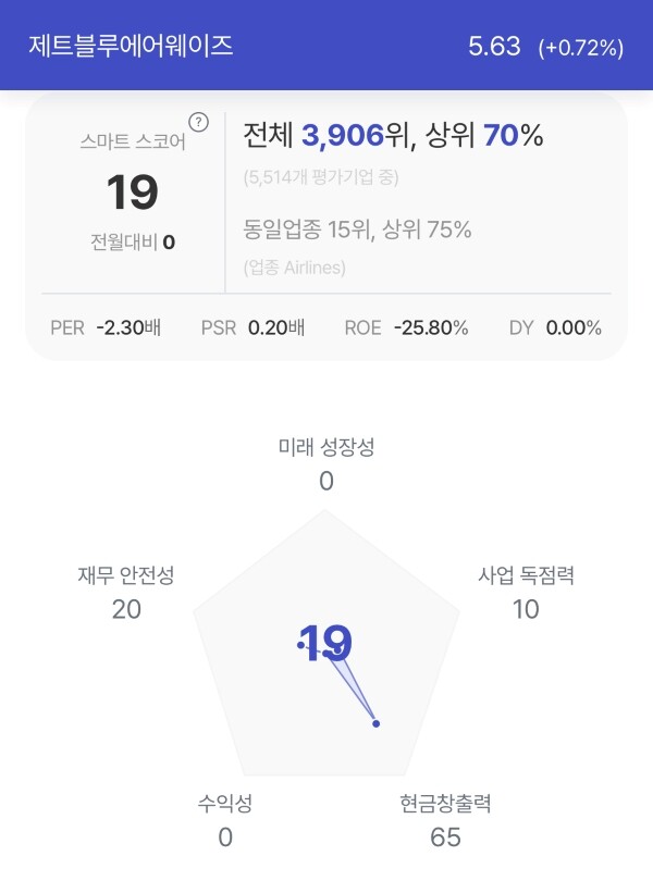 현재 제트블루 주가는 0.72% 상승폭으로 거래되고 있다.