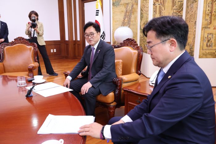 한편 이날 우 의장은 원내대표 회동 직전 열린 국회 본회의에서 총 투표수 192표 중 190표를 얻어 22대 국회 전반기 국회의장에 당선됐다. 국민의힘은 본회의 개의에 반발하며 의장단 표결에 불참했다.